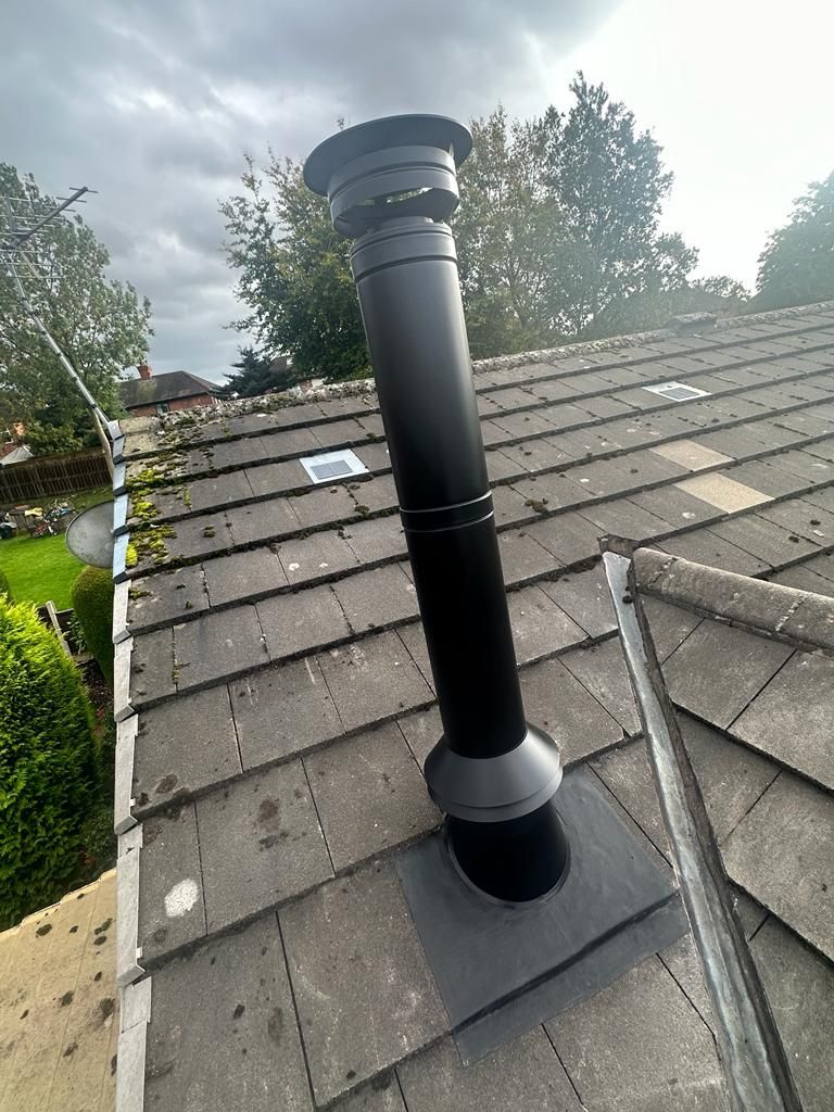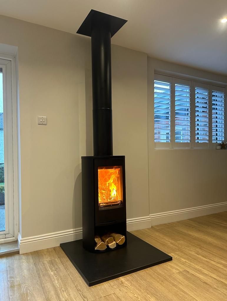 Twin wall flue may also be referred to as pre-fabricated flue or double wall insulated flue. It is used when a stove is fitted into a premises when no suitable or available chimney exists. It is made up of 2 stainless steel walls, which are kept separate by a layer of insulation. The system can be installed internally or externally.